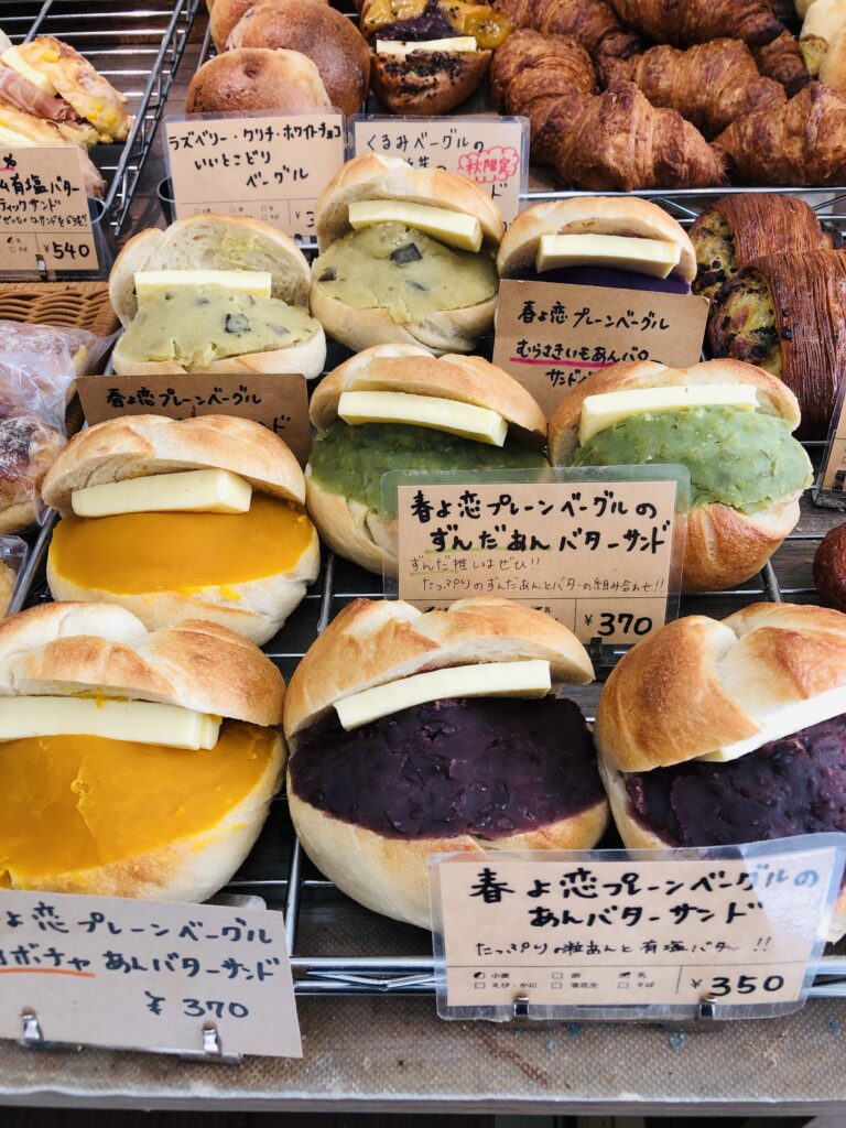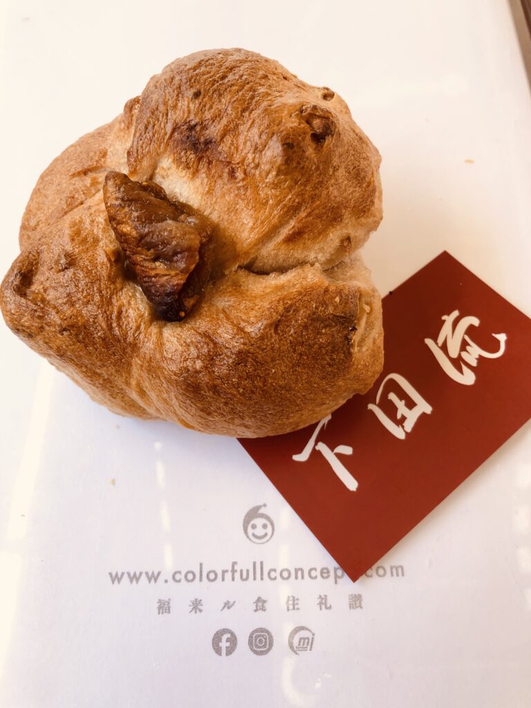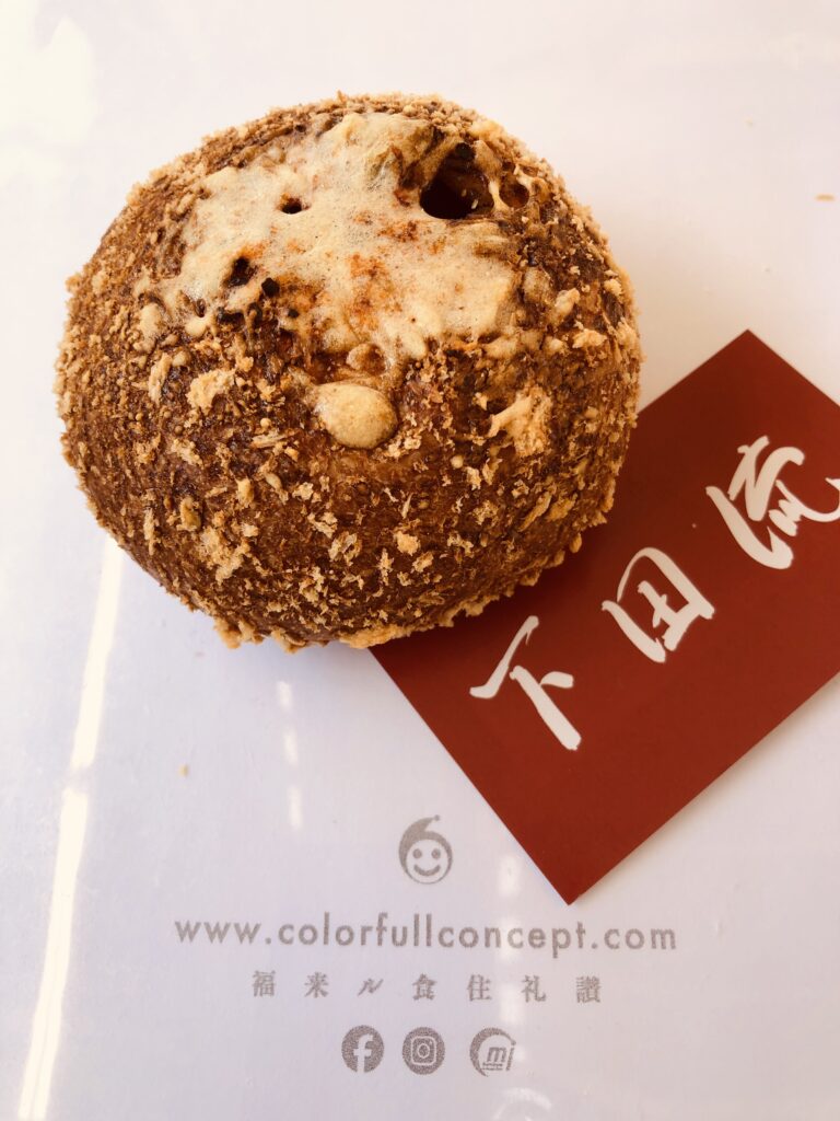 そして、なんと言っても、今回の一押しは、この「ドライイチジクとくるみのベーグル」です。すでに表面にドライイチジクがくっついますが、中には、ゴロゴロ、がっつりのドライイチジクが入っており、弾力あるベーグルの生地と押し合い状態で弾けそうな状況です。そして、そのお味は、「これはすごい!」という圧巻の食べ応え!決して硬いわけではなく、弾力ですね〜好きな感じで、これは美味しいです。お値段も「350円」というお買い得感ある価格設定で好印象です。このベーグルもまた、下田流解釈とスタイルが色濃く出た作品だと感じました。