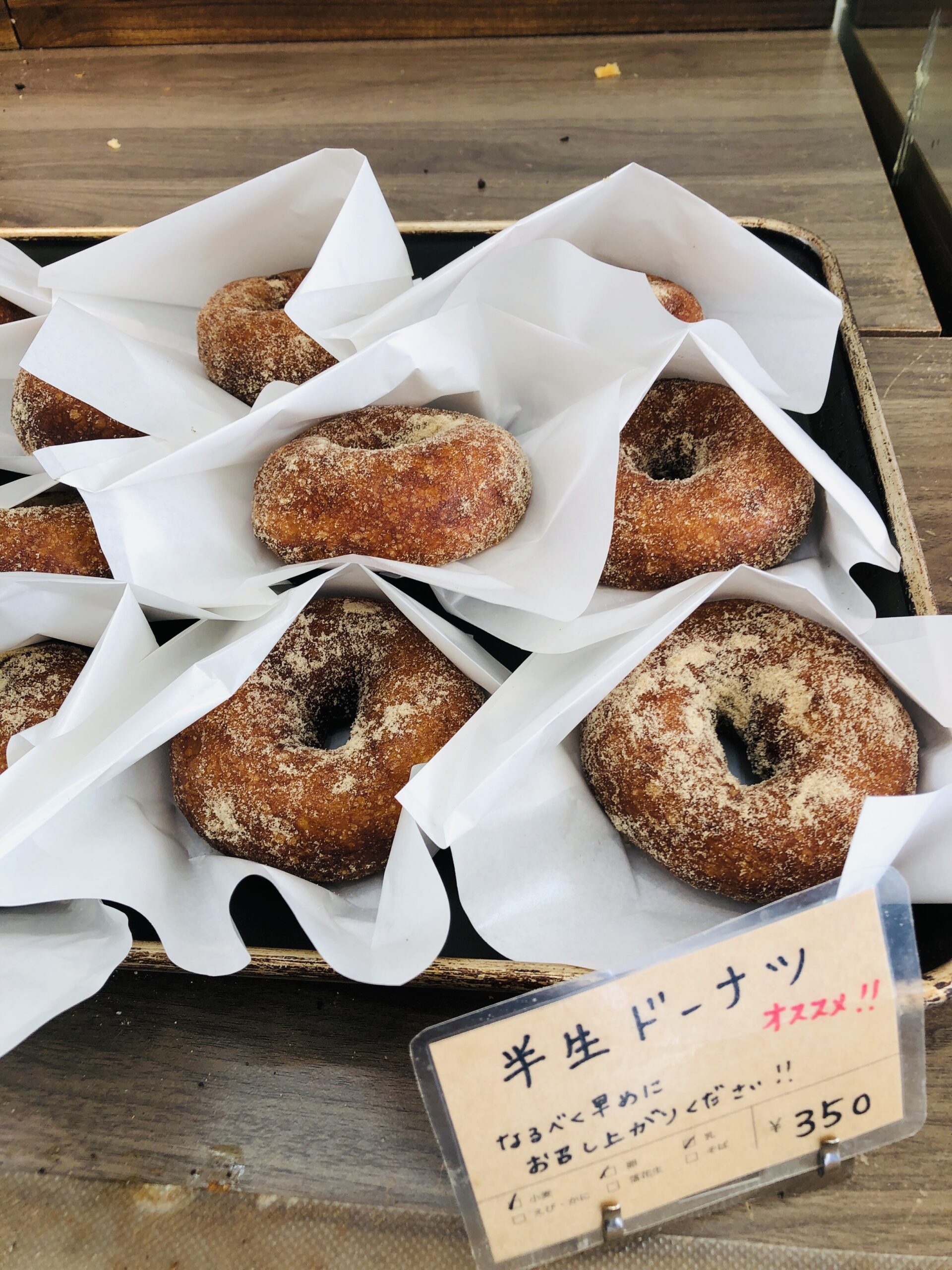 お店は、大通りに面した風通しの良いロケーションにお店があります。車で立ち寄ろうとすれば、うっかり見過ごしてしまいそうな、馴染み感です。悪く言えば、今時のベーカリーショップではない。良く言えば、だからこそ「下田流」という世界観があるのだと感心します。さて、肝心のパンたちは?といえば・・・店構えや内装の地味さなど、どうでも良いというコントラストが明確なほど、素晴らしいパンたちが鎮座しております。この日、私は14:00ごろお邪魔しましたが、上記の「半生ドーナツ」が写真のごとく、あ〜美味しそう^^という絵面で迎えてくれます。そして、実際に食してみれば、溶けて無くなるほどで、見た目のボリューム感と裏腹に「秒で」なくなります。とても1個では足りませんでした^^この日は、半生ドーナツのほかに「下田流クロワッサン」「クロワッサン・イズニー」の計3種類を購入しました。下田流クロワッサンは、ややビター感ある大人クロワッサンであり、クロワッサン・イズニーは、優しい小麦ベイクの味が広がるクロワッサンです。いずれも「下田流」が体験できる逸品です。